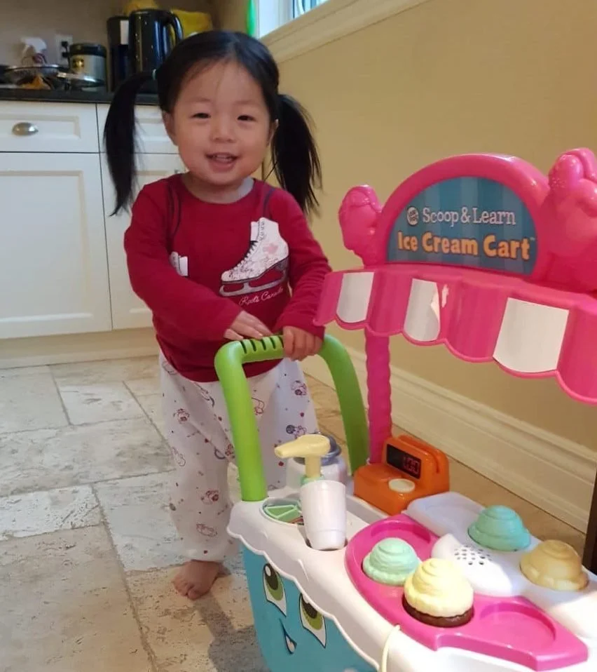 In the background of one of them was the exact toy ice-cream truck my mother-in-law had gifted Sarah-Faith that we had to leave behind in the move!